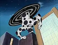 His preferred method of attack is to surround his opponent with numerous spots, allowing him to punch or kick them from unexpected angles across great distances. This proved very effective against Spider-Man as his spider-sense was unable to detect incoming attacks from another dimension, effectively negating this ability (and although the Spot's lack of super-strength meant that his punches did not actually do much damage even when they did connect, the cumulative effect could prove dangerous in an extended fight). The same phenomenon was true when Spot flung Spider-Man through a warp and he reappeared in this dimension too close to a wall to dodge. However, on Daredevil, who also has superhuman senses, this trick does not work, as his Radar Sense could easily detect the teleportation energy in the Spot's body, making it simple for him to tell where the Spot was going to attack from.[19] The Spot can also move the spots on his body to protect himself from physical attack by positioning one in the path of a punch or kick, causing the attack to pass harmlessly through a warp.