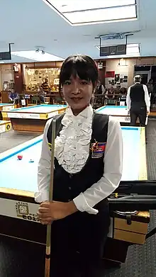 She won the ZANCA 1st Asian Championship Ladies 3-Cushion 2018 held in Seoul, the Republic of Korea, in which she jumped to third place behind Therese Klompenhouwer of the Netherlands and Gulsen Degener from Turkey in the global rankings.[4][5]