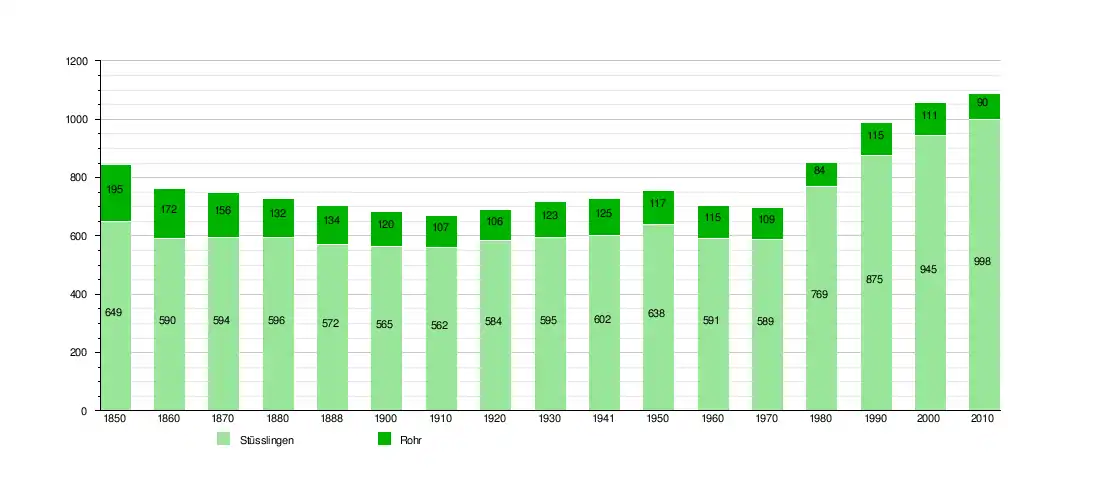 Stüsslingen has a population (as of December 2020) of 1,129.[9] As of 2008, 4.6% of the population are resident foreign nationals.[10] Over the last 10 years (1999–2009 ) the population has changed at a rate of 2.6%.[11]