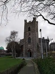 The old disused graveyard of St Audoen's has been converted into a recreation ground. Many notables were buried there, including many bishops and Lord Mayors of the city and the families of Ball, Bath, Blakeney, Browne, Cusack, Desminier, Fagan, Foster, Fyan, Gifford, Gilbert, Malone, Mapas, Molesworth, Penteny, Perceval, Quinn, Talbot and Ussher.[28] The Curate-assistant Christopher Teeling McCready (1836-1913)[29] collected detailed genealogies of some of these families in seven hand-written volumes, which are now in Marsh's Library.