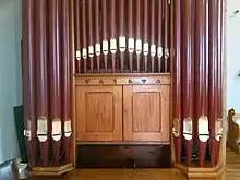 There is also a two-manual pipe organ. Originally built in Derby in 1914, it was moved to Straffan and rebuilt by Stephen Adams in 2019.[10]
