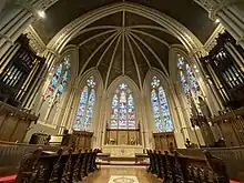 In 1889, side galleries and aisles were removed, and the choir stalls and organ console were installed in the chancel. In 1936, St. George's Chapel was dedicated, and the organ was overhauled by Casavant Frères.