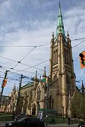 The Cathedral Church of St. James is an Anglican cathedral in Downtown Toronto, Ontario, Canada. It is the location of the oldest congregation in the city, with the parish being established in 1797. The church, with construction beginning in 1850 and opening for services on June 19, 1853, was one of the largest buildings in the city at that time. It was designed by Frederick William Cumberland and is a prime example of Gothic Revival architecture.[6]