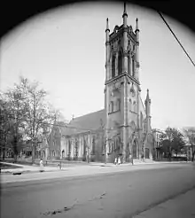 The parish of St. John's was organized in Detroit in 1858, primarily due to the efforts of Henry Porter Baldwin, a successful merchant who later became governor of Michigan and a United States senator.[4] Porter purchased and donated the property, which was then on the northern outskirts of Detroit's city limits at the corner of Woodward and High Street (now Interstate 75). He also donated the money to build a rectory and a 150-seat chapel, designed by Jordan & Anderson.[4]