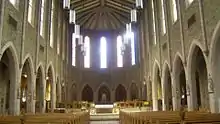 For almost three decades the cathedral was known as a "church without locks,"[1] as it was open 24 hours. However the number of people who attended perpetual adoration had been declining when on the morning of February 28, 1980 an arsonist set the altar and crucifix on fire, causing smoke and water damage to the whole building. To remove soot and smell, all the stones inside the church had to be scrubbed. Its prized possession, the Casavant Brothers organ, was sent to Quebec for cleaning and repairs. Cleanup and repair costs exceeded $250,000, with the repairs completed by December 1981. As a result of the fire the church ended both its open door policy and the practice of perpetual adoration.[3]