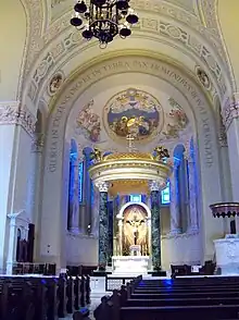 The structure has been altered over the years. A Kilgen pipe organ was installed in 1935. A fire in the lower church did significant damage to the cathedral in 1942. Conrad Schmitt Studios decorated the interior the following year, and the marble high altar and tester were installed in 1946. The frosted glass windows were replaced by French stenciled stained glass windows in 1947. A major interior restoration took place between 1970 and 1974. A new free-standing altar was installed at that time. In 2004 the Sacred Heart Chapel was created in the sacristy and the basement was renovated to become a parish hall. Another major renovation of the cathedral interior was completed in 2011.[6]