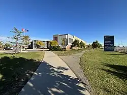 The Courtneypark Library serves as both a community library with resources and programs geared to the everyday requirements of all ages of users, and a school library for the school.[2] This library is a shared facility between the City of Mississauga and the Dufferin-Peel Catholic District School Board.[3]