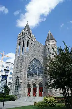 Saint Mark United Methodist Church is a United Methodist Church in midtown Atlanta, Georgia. The building was constructed between 1902 and 1903 by the congregation of Merritts Avenue Methodist Church after they outgrew their previous building. The architecture is notable for its use of Stone Mountain granite, triple entrance portal, and pot-metal stained-glass windows. The building is one of the few Gothic Revival granite churches in Atlanta.