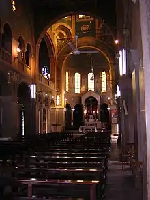 The city was taken by the Mahdist troops in 1885, who destroyed the church and all missions in the country. The war ended in 1898 with the Battle of Omdurman, and missionary work recommenced the following year. When the British built the modern city of Khartoum as capital of the Anglo-Egyptian Sudan, a new cathedral was constructed. It was completed in 1908 in neo-Romanesque style, featuring three naves and a high tower.[3] [4]