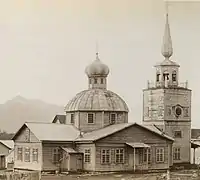 St. Michael's Cathedral (Russian: Собор Архангела Михаила Sobor Arkhangela Mikhaila, also known as the Cathedral of St. Michael the Archangel) is a cathedral of the Orthodox Church in America Diocese of Alaska, at Lincoln and Maksoutoff Streets in Sitka, Alaska. The earliest Orthodox cathedral in the New World, it was built in the nineteenth century, when Alaska was under the control of Russia, though this structure burned down in 1966.[3] After 1872, the cathedral came under the control of the Diocese of Alaska. It had been a National Historic Landmark since 1962, notable as an important legacy of Russian influence in North America and Southeast Alaska in particular.[4][5]