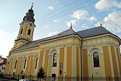 St. Nicholas Cathedral follows the Romanian Rite (Byzantine) and is in full communion the Pope in Rome. Its construction began in 1800, when the Greek Catholic Bishop Ignatius Darabant asked demolish the small Greek-Catholic church in the city and begin construction of the cathedral. The construction plan is cross-shaped design, vaulted ceiling and a central dome painted with biblical scenes. The baroque roof of the tower was completed in 1803 and burned down twice, in 1836 and 1907. The tower was designed by Giovanni Quai and was built between 1910 and 1912. In 1948, the church lost the status of a cathedral and reduced a simple parish church.