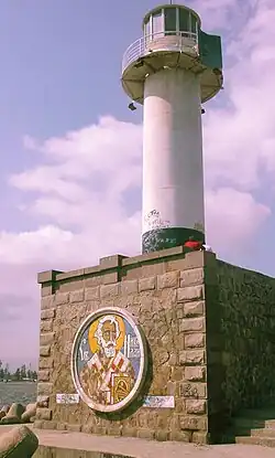 Saint Nicholai's icon (Holy image) labels the light house at the tip of the outskirt pier of the Port of Varna. Saint Nicholai (see also Saint Nicholas) is patron saint of sailors, fishermen, ships and sailing. In centuries of Greek folklore, Nicholas was seen as "The Lord of the Sea", often described by modern Greek scholars as a kind of Christianised version of Poseidon (after the advent of Christianity).[1]