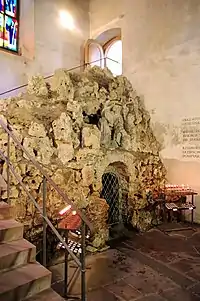 It is one of the oldest pilgrimage destinations in Germany.[1][2] The chapel is consecrated to Saint Odile. She is usually depicted with an abbess bar and a book on which two or three eyes are lying, indicating that she was born blind and is believed to cure eye diseases. The church was built over a spring whose water contains radon which is said to alleviate eye diseases. It is open to the public.