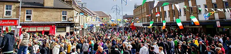The Saint Patrick's Day Festival in Coatbridge commenced in 2003 with a single event and has run every year since. The festival has grown and, by 2007, it included an art exhibition, theatre, sports, music, film, street festival and dance events. The festival now runs for 10 days and each year the day-long Saturday street-party in Main Street with Irish music and Irish dancing is the festival highlight. In 2006, 9,000 people took part in the festival.[20]