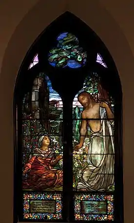 The interior features several Tiffany stained glass windows designed by parishioner and Selma native, Clara Weaver Parrish, who was a noted artist who worked for Tiffany Studios in New York.[2][3][4]