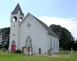 St. Peter's Methodist Episcopal Church is a historic Methodist Episcopal church located at Hopewell, Somerset County, Maryland. It is a large single-story gable-front Gothic Revival frame church with four-story bell tower. It was built in 1850 and extensively reworked in 1901. Also on the property is a cemetery with 19th and 20th century markers.[2]