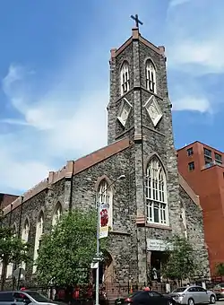 The Church of St. Teresa is a Roman Catholic parish located at 16-18 Rutgers Street on the corner of Henry Street in the Lower East Side neighborhood of Manhattan, New York City.[1] The parish is under the authority of the Archdiocese of New York.[2] The church building was constructed in 1841-42 as the Rutgers Presbyterian Church erected in the Gothic Revival style on a plot of ground donated by Colonel Henry Rutgers, and it is said to have the oldest public clock in New York City.[3] The church was taken over by St. Teresa's Parish in 1863, three years after it was founded.[3]