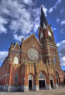 St. Willebrord Catholic Church is a parish of the Roman Catholic Diocese of Green Bay located in downtown Green Bay, Wisconsin. It was founded in 1864 by Dutch immigrants, and dedicated to St. Willibrord. The church is spelled Willebrord (with an "e" in the middle) because stonemasons made a mistake when carving the name.