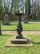 In the churchyard is a sundial of ashlar buff sandstone dating from the 18th century which was restored in the 20th century. It is listed at Grade II.[7] The churchyard also contains the war graves of a soldier of World War I, and two of World War II.[8]