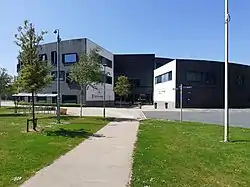 It has a six-lane swimming pool, after the old one was decommissioned in 2005. It has a large sports hall above it, and a fitness suite. These facilities are open most lunch times, as well as before and after school for students to use. The sports section has its own reception that is not used, and can be separated from the main building using a roller shutter. This is so it can be opened to the public, with the rest of the school being shut off. The school also has a lecture theatre, as well as an all day cafe for students and staff.