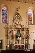 St Andrew's Church was first mentioned in a document in 1182. In 1210, the construction of a new church began, which was completed around 1370. A fire destroyed the church in 1416; it was rebuilt in the later course of the 15th century. Around 1830, the building was modified. It has a flat ceiling with a pointed barrel; a crucifixion relief from around 1370 is emblazoned above the southern main entrance. A stone relief dating from 1450 shows the motif of the Lamentation of Christ.[2] The Reformation was introduced in 1522; since then, St Andrew's Church has been Protestant. In 1604, it merged with the neighbouring congregation of St Maurice's and in 1973 with the congregation of St Michael's Church. Since 1727, a wooden model of the epitaph for Martin Luther has been in St Andrew's Church.[3]