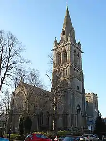 In order to cater for the growing population of the town, the church was extensively rebuilt on a much larger footprint in the 19th century, to the designs of William Butterfield, retaining only the tower and nave arcade from the medieval church. These works were carried out between 1877 and 1879. From 1895 to 1896, further additions were made to the church by Ewan Christian to Butterfield's original designs, including a new east tower, added in 1895 which has a spire 182 ft (55 m) high.[1][4]