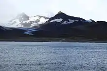 Cook Glacier, which once terminated in the bay, has retreated from the current beach since the 1970s, leaving a lake and gravel beach in its wake. Heaney Glacier and Buxton Glacier also terminate inland from the bay.