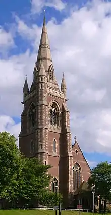 The church dates from 1874 and is by the architect Frederick Preedy.[1] It is Grade II listed.[2][3] It was originally a separate parish, but is now part of a united benefice with St. Mary's Church, Moseley.