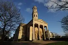 A Commissioners' church, it was built from 1820 to 1824. It was designed by the architect Robert Smirke in Greek Revival style.[1] Smirke also used the tower design for St Mary's, Bryanston Square and St Philip's Church, Salford, although these two churches have semicircular porticos unlike that of St Anne's.