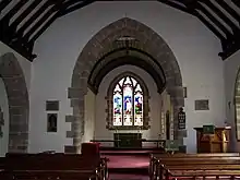 St Bartholomew's Church was redesigned by architect Ewan Christian and rebuilt in Butterton in 1871.[3] It has a tower with two bells.[4] The church is on the site of an earlier place of worship.[3] The church's spire, which was added in 1879, dominates the local landscape and is one of the newest spires in the Peak District.[4] Within the church there is a memorial plaque to Joseph Wood, Rowland Cantrill and William Hambleton, who all died trying to rescue Joseph Shenton from a disused mineshaft in 1842.[5]