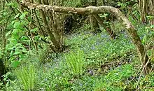 The slopes west of the River Alun include the Coed y Bwl Nature Reserve, a SSSI known locally as Wild Daffodil Wood after its most distinctive feature, a large area of wild daffodils planted in the 19th century, although wood anemone and bluebells are also abundant, with a tree cover of ash woodland. The reserve is managed by the Wildlife Trust of South and West Wales, and covers 2.4 hectares (5.9 acres). It is open to public, with a main entrance near Castle-upon-Alun at (51°27′46″N 3°34′22″W / 51.4628°N 3.57279°W, OS grid Ref. SS90847493).[16]