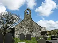 The church is isolated, located in the countryside of north Anglesey by a farm, about 1 mile (1.6 km) from Llanrhuddlad, in an area of Anglesey known as Mynydd Mechell.[3][5] Llanfflewin takes its name from the church: the Welsh word llan originally meant "enclosure" and then "church", so "Llanfflewin" means "Church of Fflewin".[12] It is set within a raised circular enclosure, with an arched lychgate (possibly of 17th-century date).[9] It is still in use for worship, and belongs to the Church in Wales, as one of five churches in the combined benefice of Llanfechell with Bodewryd with Rhosbeirio with Llanfflewin and Llanbadrig.[1] It is within the deanery of Twrcelyn, the archdeaconry of Bangor and the Diocese of Bangor.[2] As of 2012, the rector is Canon G W Edwards.[1]