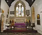 The stained glass is mainly 19th and 20th-century with the exception of the north quatrefoil window which is 14th-century and which was discovered hidden during the Victorian restoration. It was repositioned in the chancel and glazed with a picture of an angel holding a scroll on which is written "Sanctus Sanctus Sanctus".[13]