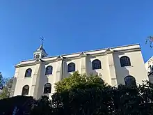 In 1832, the copyhold was purchased by John Wilcox, an admirer of George Whitefield, with the aid of a loan from a local dissenter.[4] Wilcox established evangelical ministry at the church, but encountered opposition from Samuel White, perpetual curate of the parish of St John, Hampstead, whose permission was required to conduct services in the parish, since Downshire Hill was at that time located in the same parish. Unlike Wilcox, who was the son of a Gloucester publican, White had effectively inherited his curacy in Hampstead from his father, and a contemporary periodical[5] noted theological differences between White and Wilcox's Calvinist doctrinal position. Wilcox had made known[4] that he would preach as a dissenter if not given permission to as an Anglican minister and, after he ignored a letter from White informing him he did not have White's permission to officiate at services at St John's Downshire Hill, White began proceedings against Wilcox for officiating without the permission of the incumbent.[6]