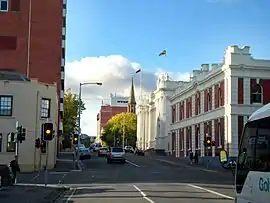 St John Street is a main north-south street located in the city of Launceston, Tasmania. St John Street starts at the Esplanade (former Queens Wharf) and runs roughly SSE for 1.8 km to where it terminates on Howick Street on the border with South Launceston. St John Street serves as one of two 'high streets' in the city and runs past many of the city's most iconic and important buildings. The street is notably broken twice in its southernmost length between Frankland and Howick Street where the street runs over a ridge whereby the terrain was too steep for vehicular traffic to use safely resulting in portions of the street being utilized as pedestrian only reserves and only accessible to vehicles via French Street.