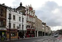 The Red Bull Theatre was located on the street between 1604 and 1666, when it was destroyed in the Great Fire of London.[4] James Burnett, Lord Monboddo (1714–1799) lived at 13 St John Street.[5] He held "learned suppers" at his house, with guests including James Boswell, Robert Burns and Samuel Johnson. Nowadays there are many office buildings, restaurants, and bars in the street.