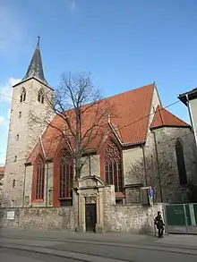 St Lawrence's Church was founded in 1138 by the Mainz viceroy Giselbert.[1] It was first built around 1140, consecrated by the then provost of Erfurt and later archbishop of Mainz, Adelbert II, and had been a parish church since its foundation. The original building was Romanesque, of which almost nothing remains.