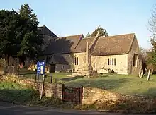 The churchyard contains a number of graves, including a headstone maintained by the Commonwealth War Graves Commission for William Barson who died in World War I at the age of 17.[19] The English scholar, Sir Walter Raleigh, was buried there in 1922. There are two chest tombs, both of which are Grade II listed.[1] There is also the base of a churchyard cross, which is also Grade II listed. The cross is believed to have been built in the 12th or 13th century.[20] At some point before 1800, the top part of the cross became detached and fragments of the cross were fixed to the east wall of the church.[21] A piece of the top part of the cross was discovered at All Souls College, Oxford in 1983, where it had been used as part of 19th century building work to block up a doorway.[20] It is not known how this piece got to All Souls College, and the other pieces are lost.