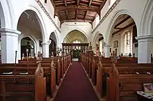 Charles Winmill and George Jack were involved in a restoration of the interior between 1929 and 1936.[6][7] The building was Grade I listed in 1954.[8] An extension was added along the south side late in the 20th century to provide an office, bookshop and refectory.