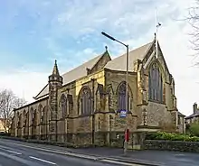The former St Mark's Church, Old Leeds Road, Huddersfield, was an Anglican parish church in West Yorkshire, England. It was previously known as St Mark's, Leeds Road, before the road name was changed. ("Leeds Road" differentiates this building from St. Mark the Evangelist, Longwood, Huddersfield.) This building was designed in 1886 by William Swinden Barber[1] when the parish of St Peter's was split and a new building was required to accommodate a growing congregation. It was opened in 1887. Among the vicars posted in this benefice were the very popular Canon Percy Holbrook,[2] the notoriously unfortunate Reverend Jonas Pilling who was involved in a standoff with his congregation for many years,[3] the sociable Reverend Robert Alfred Humble who died in mysterious circumstances,[4][5] and the eloquent preacher Reverend Joseph Miller, who had previously been a Congregational minister.[6][7] The building was sold by the Church of England in 2001, and it has been converted into a block of offices.
