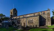 A church has been present on the site since at least 1203. This was originally a chapel of ease to the mother church at Kendal, becoming a parish in its own right in 1348 at which time the churchyard was consecrated.[4] The church burnt down in 1480, only the font, the base of the tower, and one door surviving.[5] A new church was built and was consecrated in 1483.[6] Amongst the benefactors was a local carrier named Bellman, who is said to have provided the lead for the roof. The church at this time had a simple plan, consisting of a nave with aisles, and a west tower. It contained box pews, a rood loft, a three-decker pulpit and, by 1812, a west gallery. On the walls and roof beams were murals and painted biblical texts.[5]