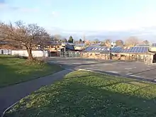 The first brick was laid on 30 May 1978. Phase 1, consisting of the Gym, Drama Hall and Music room (the current IT2) Block and the Admin, Design Technology and Canteen Blocks were handed over by the developer on 27 November 1980. Work was underway on Phase 2 (Art, Chemistry, and Humanities) and this was completed by the summer of 1981. The school grounds opened to pupils in September 1981, although construction of the Biology and Language Blocks (Phase 3) was still underway. Phase 4, the Sixth Form block, was completed in 1984 along with its architectural highlight 'the Bridge'. Phase 5 was never constructed.[4] The large playing fields were finally handed over by the developer in the mid-1980s, much later than planned, due to issues with landscaping and coal mining shafts being discovered. A primary school was marked on plans for the East 'mound' area of the field, but this was cancelled in the late 1980s.
