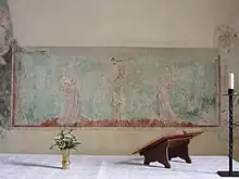 In 1961 a set of three paintings were discovered on the east wall. These had previously been hidden by a Victorian reredos.They have been dated to the 14th century.[9]