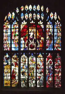 During the Second World War, the stained glass windows were removed and stored in a cellar for safekeeping from 1939 to 1945.[9][10] A conservation and restoration programme began in 1988 and finished in 2010.[11] Clear glass now protects the old glass.[12]