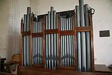 The first recorded organ was a reed organ; this was replaced by an undated organ by the King's Lynn organ builder Samuel Street (active 1840–1883).[6] In 1937 it was removed and reinstalled at St Peter's Church, Smallburgh, where it remains.[7]