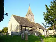 St Mary's Church is the Grade I listed[1] Anglican parish church of West Chiltington, a village in the Horsham district of West Sussex, England. The 12th-century building, described as a "showpiece"[2] and "the most attractive part" of the Wealden village,[3] retains many features of historical and architectural interest. These include an exceptionally long hagioscope or squint from the south aisle into the chancel, a porch which may be Sussex's oldest,[3] and a well preserved and extensive scheme of wall paintings. In the Sussex volume of The Buildings of England, Ian Nairn says that the appearance of the church gives "a very happy, unexpected effect, like a French village church".[4]