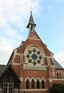 St Mary Immaculate is an active Roman Catholic parish church in the town of Warwick, England. It lies to the south west of the town on West Street outside the West Gate. The church was opened on 12 May 1860.[1] The architect was Edward Welby Pugin,[1] eldest son of the more famous Augustus Pugin. The church is built in red brick and Bath stone in the Decorated Gothic style and is a Grade II listed building. St Mary Immaculate was probably the first church in England to be dedicated to the Immaculate Conception after the definition of the dogma in 1854.[1]