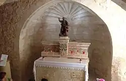 The chapel's interior is quite simple. It has one stone altar with the date 1897 inscribed on it. There is also a small statue of St Matthew on the altar. Just above of the altar there is a little apse decorated with a well-preserved fresco of a scallop shell. The interior is built in pointed archways, typical to medieval church buildings in Malta. A painting depicting St Matthew was also reported as being present in the chapel however no one knows what happened to this painting. [5]