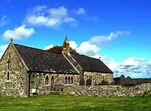 St Mihangel's Church is set within a gated and walled churchyard at the side of the road in the village of Llanfihangel yn Nhowyn in Anglesey, north Wales. It is dedicated to St Michael (Welsh: Mihangel).[2] The village, which is about 5 miles (8.0 km) from the port town of Holyhead in the north-west of the island, takes its name from the church; the Welsh word llan originally meant "enclosure" and then "church", and "‑fihangel" is a modified form of the saint's name.[3][4]
