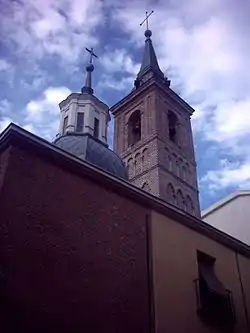 The most interesting feature of this temple is undoubtedly its tower, dating from the 12th century except the Herrerian style spire tops, made of slate for the 18th century. It has a square and is constructed of brick decorated with blind arches. The brick has dimensions of 30 x 15 cm in the lower parts, but it was the brick bell tower area are smaller and of a different hue. This tower possibly corresponds to one of the Arab minarets preserved in the city. The tower was transformed in the 14th century, when it changed the cover, which was subsequently replaced by the spire.